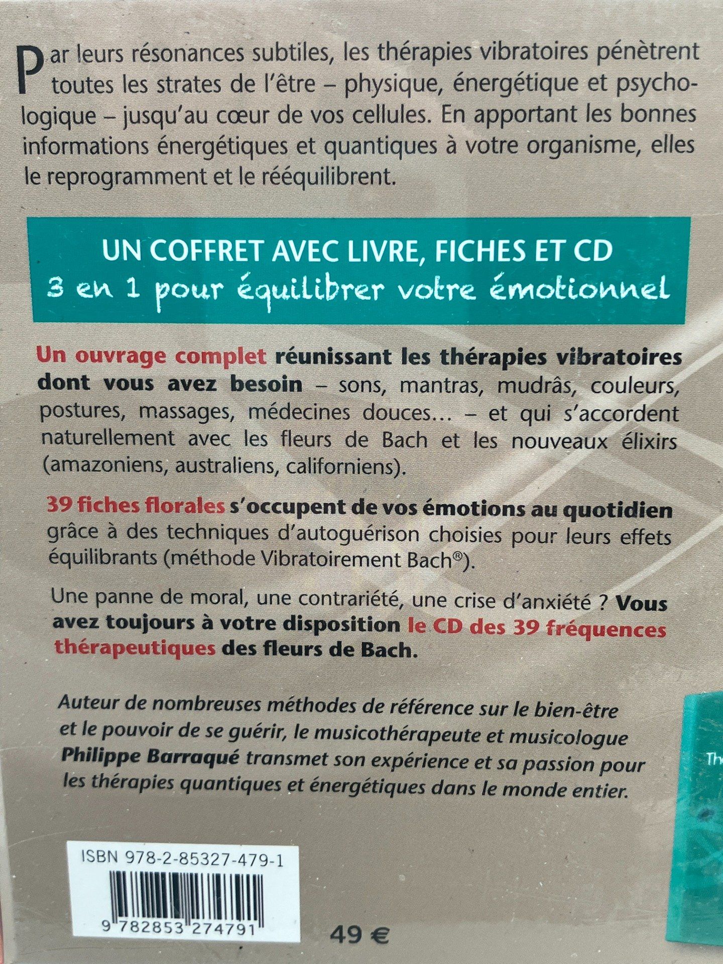 Déstockage coffret sous blister. Thérapies vibratoires et fleurs de Bach. Coffret 20,6 cm × 15,3 cm × 7,5 cm. Livre 224 pages, 39 fiches des fleurs de Bach, 1 CD audio. Editeur MEDICIS Parution : 19.09.2014 Arrêt de commercialisation : 02.09.2025
