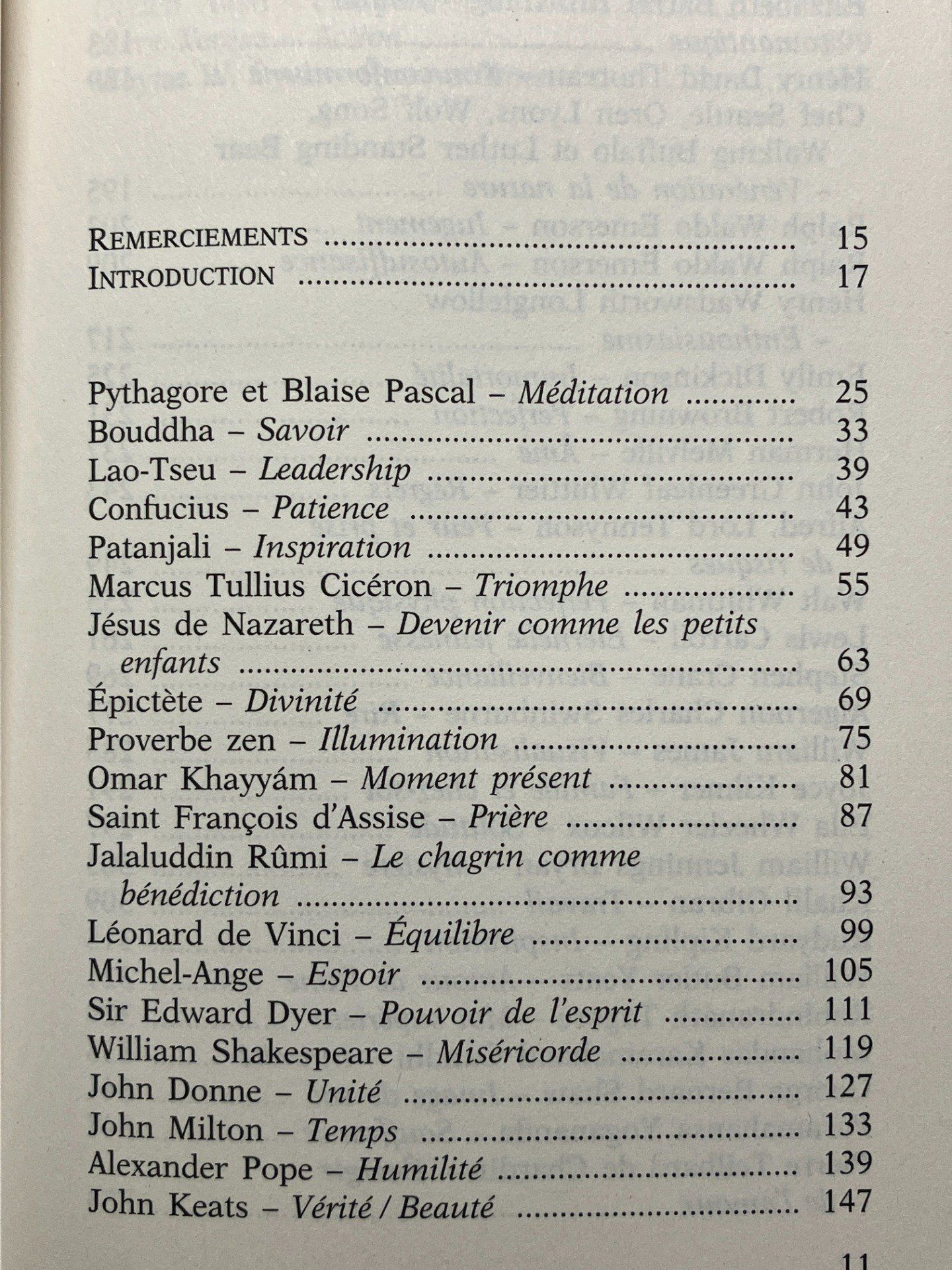 Les grands maîtres que sont Jésus, Bouddha, Confucius, Lao-tseu, Rumi, Michel-Ange, saint François d'Assise, Goethe, Henry David Thoreau, etc, nous ont légué des trésors de sagesse travers leurs paroles et leurs paraboles. Découvrez dans ce livre unique les messages de soixante de ces Sages issus de toutes les religions et traditions. La sélection de citations que propose ici le Dr Wayne W Dyer sera votre guide pour tous les moments de votre vie.