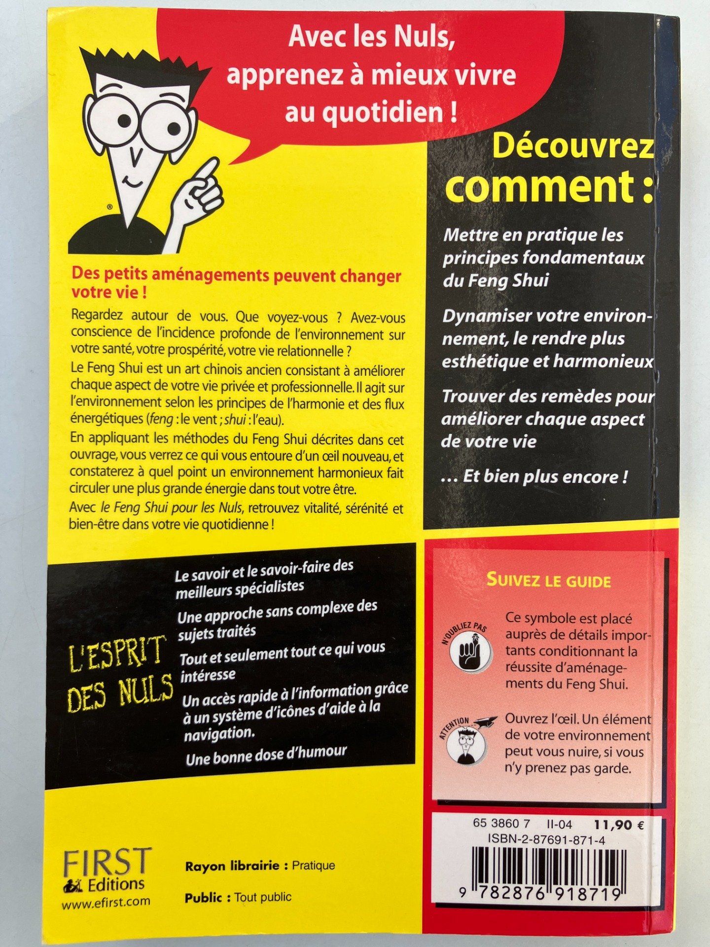 Le Feng Shui est un art chinois ancien consistant à améliorer votre vie. Il agit sur l'environnement selon les principes de l'harmonie et des flux énergétiques (feng : le vent ; shui : l'eau). Appliquez les méthodes du Feng Shui. Vous verrez ce qui vous entoure d'un oeil nouveau et vous constaterez à quel point la disposition de votre habitation influence votre travail, vos relations et votre santé.