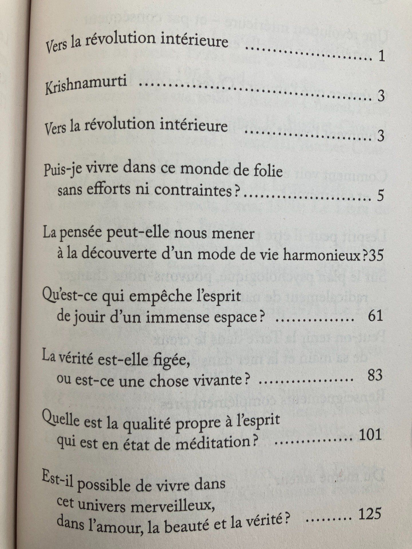 Ce nouveau recueil de Jiddu Krishnamurti développe l'idée du lien entre sa propre transformation intérieure et l'image que l'on donne aux autres. Il y rappelle les principes spirituels fondateurs de sa pensée : il faut apprendre, et vivre, par l'expérience directe, non par la sagesse reçue des textes et des enseignants. Rejeter ce qui était (le passé) et ce qui devrait être (l'idéal) afin de percevoir à travers l'observation directe ce qui se passe chaque jour et dans chaque expérience. Regardez en son for intérieur afin d'apprendre comment fonctionne l'esprit et ainsi changer le monde.
